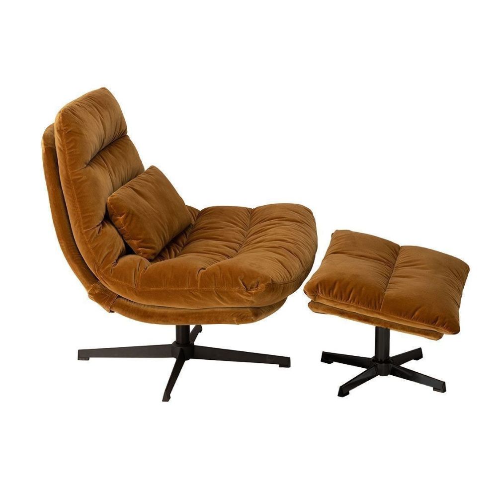 Swivel armchair upholstered in camel-colored velvet (100% cotton)